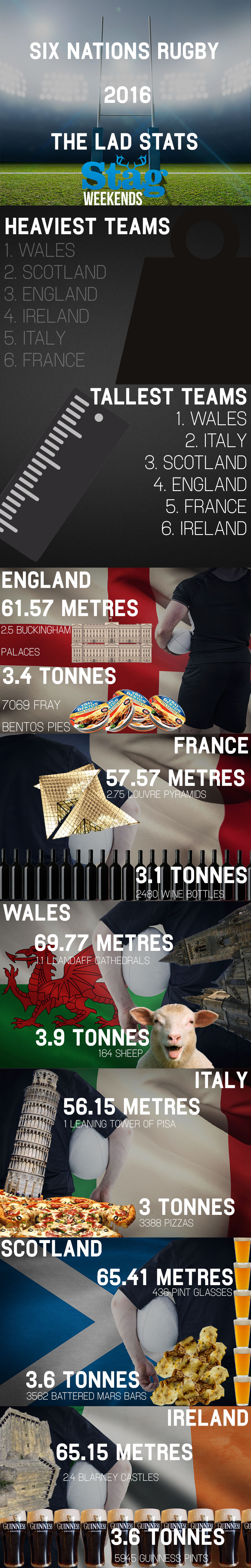 With every team's total height in excess of 60 metres, and weight over 3 tonnes, we had to put these mind-blowing numbers into perspective. Which team weighs the same as 7069 Fray Bentos pies? What squad is as tall as the Leaning Tower of Pisa (and probably more sturdy too)? Find out with our infographic below!