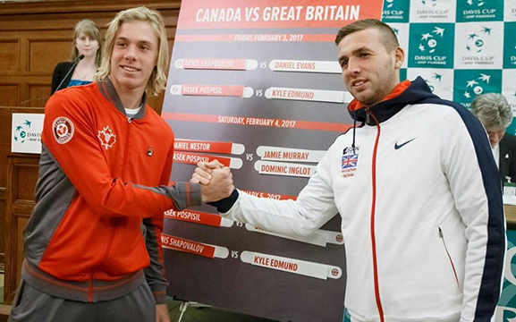 With world number three Milos Raonic missing for Canada, the first rubber will see Dan Evans play 17-year-old Denis Shapovalov. The second rubber will be between Kyle Edmund and Vasek Pospisil, before Jamie Murray and Dom Inglot take on Daniel Nestor and Pospisil in the doubles.