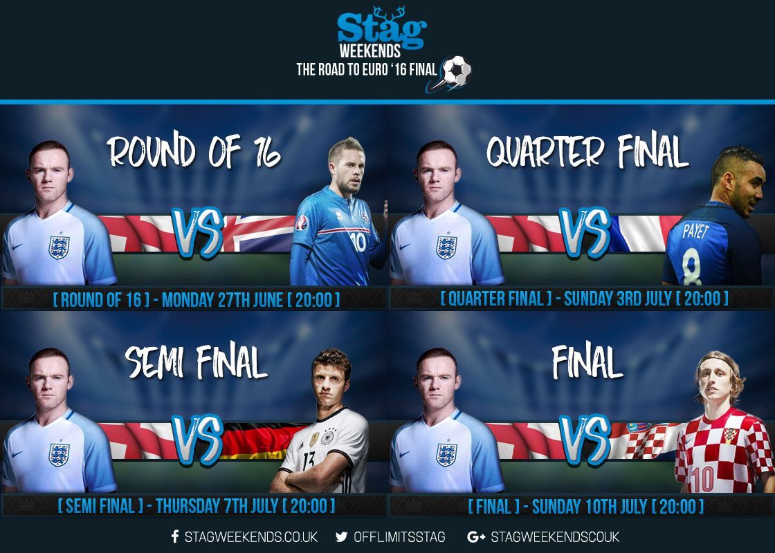 If England do manage to conquer Iceland, Euro 2016 hosts France will most likely be their quarter final opponents. Oh, and then the small matter of Germany and Croatia thereafter should they progress!